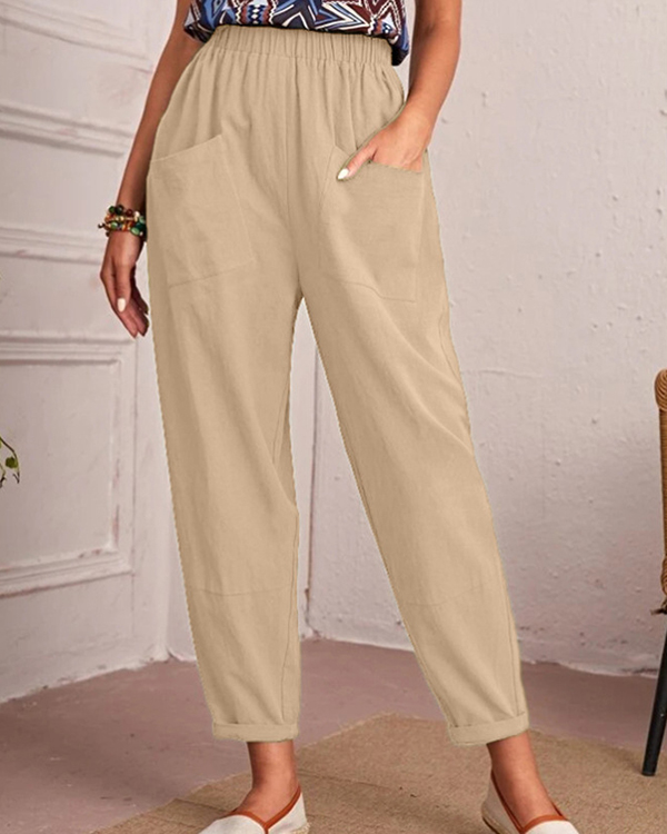 Linen Stretch Casual Pocket Pants